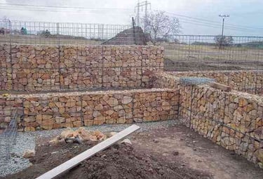 Specializujeme se na gabionové stavební prvky. Kompletní dodávky. Materiál - sítě , koše , kameny .